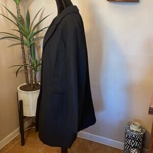 The menswear-inspired silhouette of this coat makes it a timeless investment. Features a shawl collar with a notched lapel, single breasted 3 button closure, front seams & back vent.