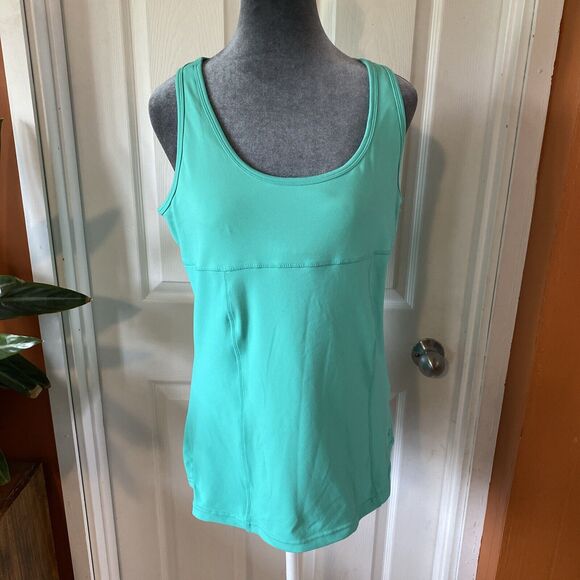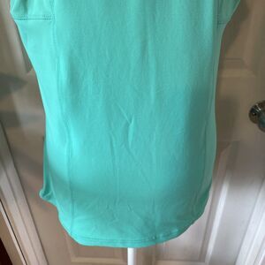 This EllumiNation Sports women's tank top is perfect for any athletic activity, especially running and jogging. The top comes in a size L and features a scoop neckline, pullover closure, and a solid pattern in a beautiful mint green color. The fabric is made of spandex and nylon, making it lightweight, stretchy, and breathable.