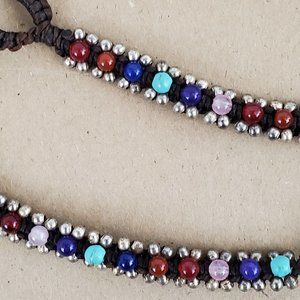 Elly Preston Multi Color Gemstone Mother of Pearl Woven Bead Wraparound Watch. Lug width .75". Needs a battery. Untested.