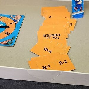 A great vintage game from 1975 for kids 6 - 12. All pieces are in the game. They show a liite wear from age. The box has wear on the corners and a name written on the front.