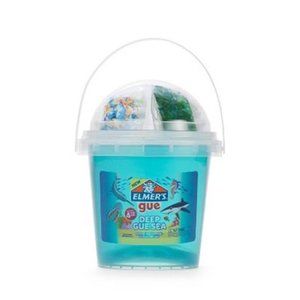 Take a dive into the Deep Gue Sea with this giant-sized bucket of Elmer’s Gue and slime add-ins! It’s 1.5 pounds of pre-made slime that comes ready to play straight out of the bucket! This batch is a clear blue slime, making it the perfect base for mixing in fun add-ins. With this ocean-themed bucket, you’ll find bingsu beads (for crunchy slime), glitter, fishbowl beads, and mini sharks and fish. And the big size means it’s great for slime parties and sharing! Stretch it, squish it, twist it; explore all the fun ways to play with Elmer’s Gue!