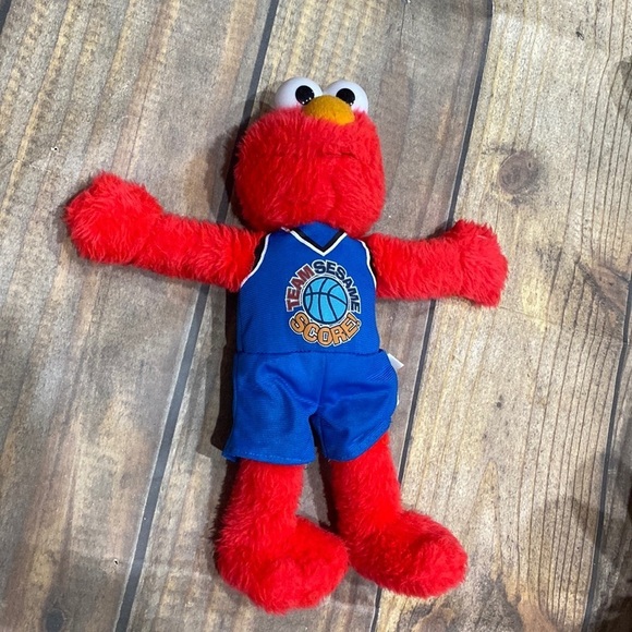 Cute used played with Elmo plush 13” for your little Elmo Basketball fan! He has a little glitter glue on his foot.