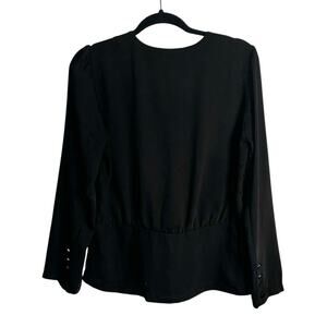 Elodie Black Surplice Wrap Blouse Size L – Long Sleeve V‑Neck Peplum Style