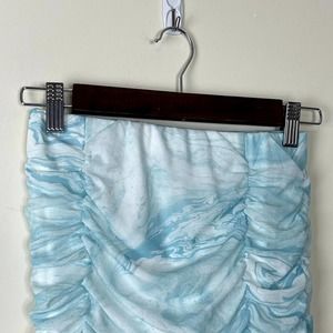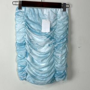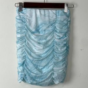 Elodie Blue White Marbled Mesh Ruched Mini Skirt NWT Size XS