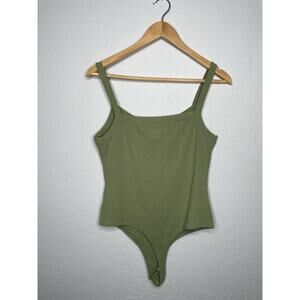 Elodie Bodysuit Sz XL Tank Ribbed Thong Olive Green Snap Crotch New Without Tags