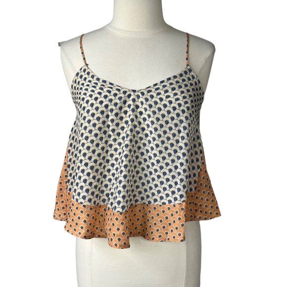 Elodie Cami Tank Top Shirt Womens Small White Blue Sleeveless Blouse