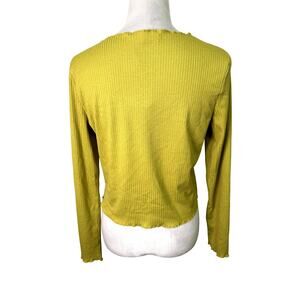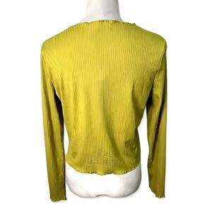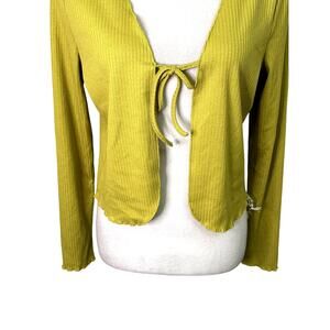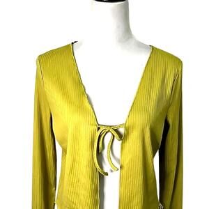 Elodie Cardigan Sweater Tie-Front Ribbed Cropped Length Mustard Yellow W L NWT