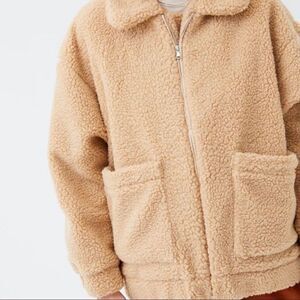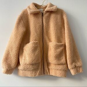 Elodie Cream Faux Sherpa Teddy Zip Up Coat Size Medium