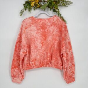 Elodie Dolman Sleeves Crop Sweater Women XL Pink Coral Marble Tie Dye Pullover