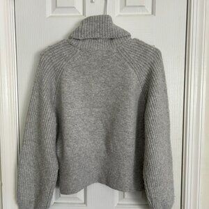 Light gray pullover turtleneck sweater from Elodie. Very soft and comfortable. Poly/wool blend; minor pilling on sides.