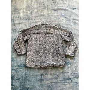 Marled black and white makes a pretty patterned gray in this super cozy sweater from Elodie. Fluffy faux fur sherpa, 1/4 zip, and high mock neckline. Front pockets with an approx 1" drop hem.