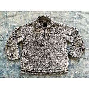 Elodie Gray Faux Fur Sherpa Fluffy 1/4 Zip Pullover High Neck Sweater Women's XL