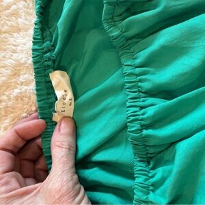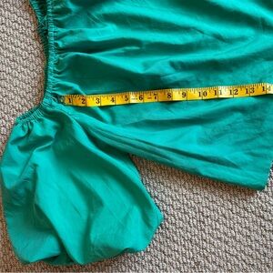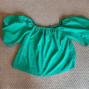 This Elodie blouse in a vibrant green hue features a relaxed fit with short flutter sleeves and a ruffled neckline. The lightweight fabric and airy design make it a perfect choice for a casual yet stylish look.
