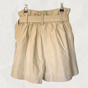 ✨ New with tags! Elodie High Waist Front Zipper Belted Paper Bag Linen Shorts In Taupe- XS. Cute, versatile summer staple!