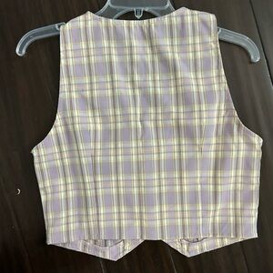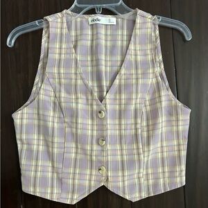Elodie Lavender Plaid Button-Up Blouse Vest