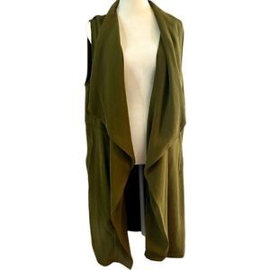 Elodie Long Open Front Vest in Olive Green Women’s M