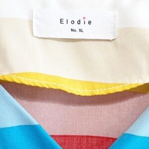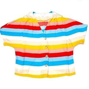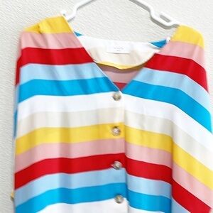 Elodie Multi Color Rainbow Stripe Button Down Top Shirt Blouse Size XL