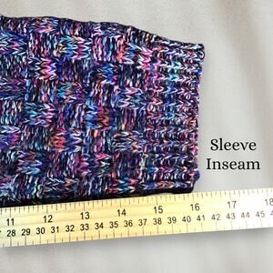 - Color: Multicolor knit (purple, orange, blue, ivory, black mix)
