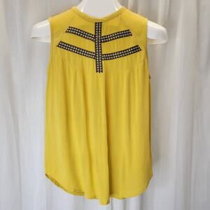 Elodie Mustard Textured Rayon Boho Sleeveless Top, M