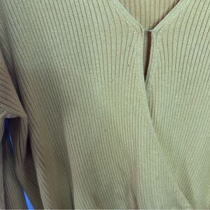 Elodie Mustard Yellow Ribbed V-Neck Wrap Sweater |Size XL|