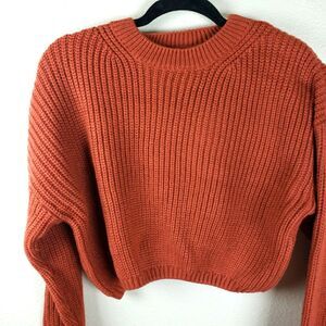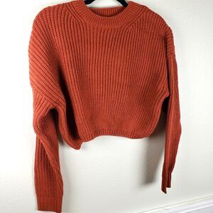 Elodie NWT Women's Orange Fall Autumn Short Knit Ribbed Crop Top Sweater Sz LRG
