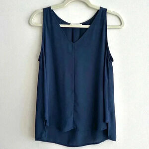 Elodie Navy Blue Swing Tank Top, Sheer Flowy Blouse, Size Small