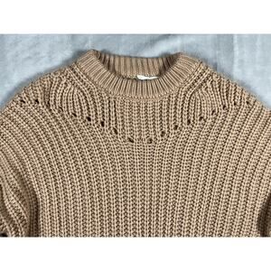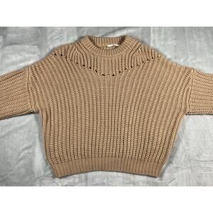 Elodie Oversized Fawn Brown Sz M Ribbed Balloon Sleeve Chunky Sweater Earthtone Cropped.