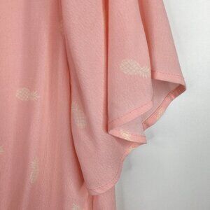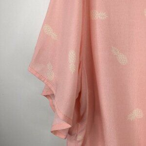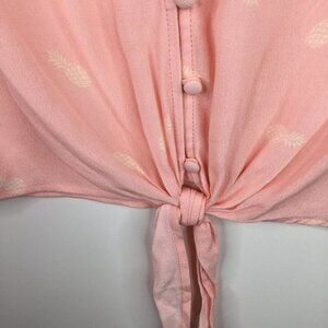Elodie Pink Pineapples Print Top Button Down Blouse Size M