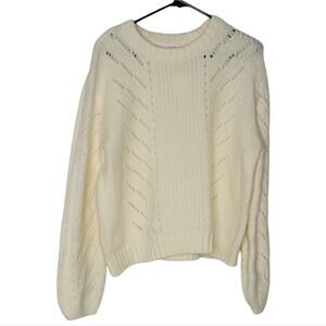 Elodie Pointelle Crewneck Knit Pullover Sweater In Ivory NEW Women's XL