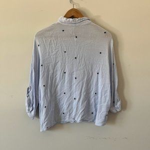 Elodie Powder Blue Embroidered Detail Button-Up Crepe Blouse