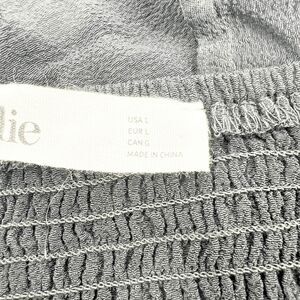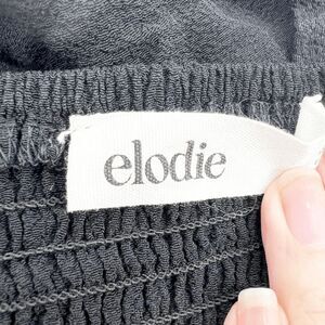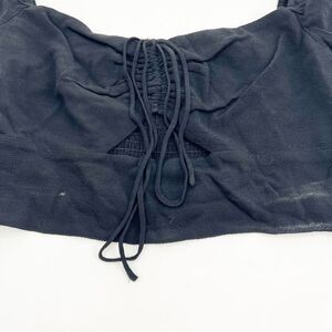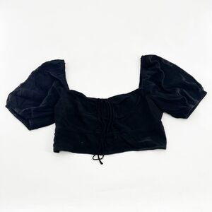 Elodie Puff Sleeve Crop Top Womens Size L Black Tie Ruched Smocked Boho