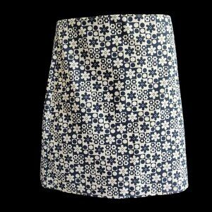 Retro dark navy and white mini skirt in a super cute Mod daisy and circle print