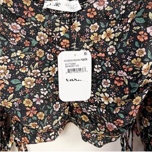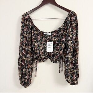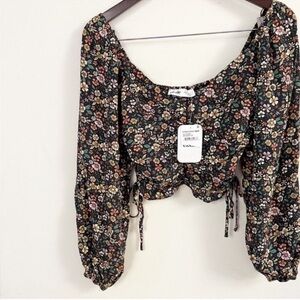 Elodie Ruched Crop Top Side Tie Long Balloon Sleeves Floral Size Small NEW