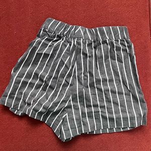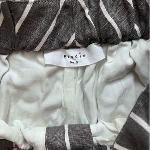 From Francesca’s Elodie Gray with white stripes. Size Small Button Closure Fully lined Elastic waist band in back to give it some stretch at waistline side pockets