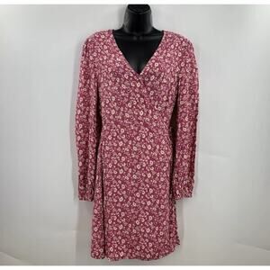 Elodie Small Floral V-Neck Tie Wrap Mini Dress Western Rose Long Sleeve Cottage