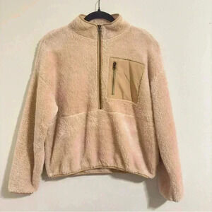 Elodie Tan Plush 1/2 Zip Jacket Size S Women's Fleece Sweatshirt Sweater Cozy