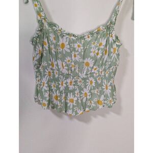 Elodie Tie Shoulder Smocked Waist Green Daisy Tank Top - Size Large