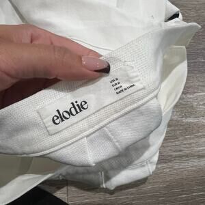 Get ready to ace your style game with this adorable Elodie tennis skirt! Featuring a crisp white base with navy blue stripes and playful pleats, this skirt is perfect for both on and off the court. In excellent condition and ready to wear. Upgrade your wardrobe with this stylish and comfortable skirt today!