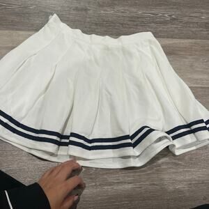 Elodie White Pleated Navy Blue Striped tennis Skirt Size Medium