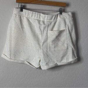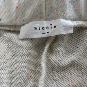 NWOT Elodie drawstring, cuffed, side pocket, back pocket confetti print shorts. I bought these from Nordstrom Rack a couple years ago and just never wore them. They are like a sweatpants material which is probably why I didn’t wear them as I live in AZ and summers are HOT! Waist 17.5”, waist to hem 13.5”, rise 12” and inseam 2.5”.
