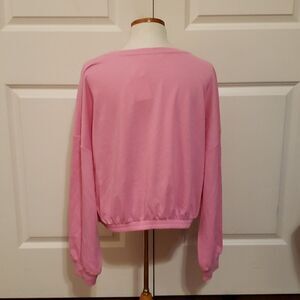 Pink long sleeve sweatshirt, semi cropped with elastic waistline.