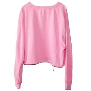 Elodie Womens French Terry Crop Sweatshirt Medium Neon Pink NEW Drawstring Waist