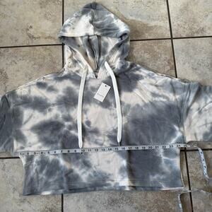 Elodie Women’s Large Crop Hoodie Gray Tie Dye Long Sleeve Oversized NWT