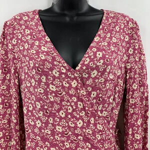 Elodie Women's Long Sleeve Floral V-Neck Tie Wrap Mini Dress Size S NWT