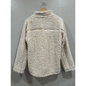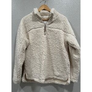 Elodie Womens Medium Cream Sherpa Pullover 1/4 Zip Cozy Soft Sweater