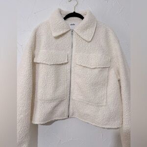 Elodie Women's Minimalist Cozy Full Zip Boucle Cream Jacket Sz XL
