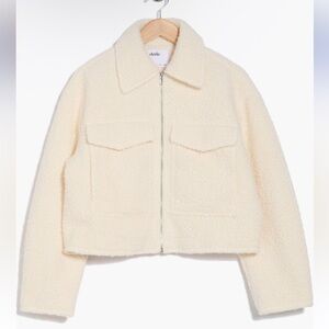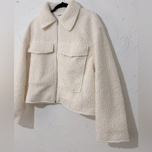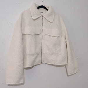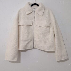 Elodie Women's Minimalist Cozy Full Zip Boucle Cream Jacket Sz XL