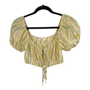 Elodie top Cropped Puff-Sleeve Tie-Front striped Large L