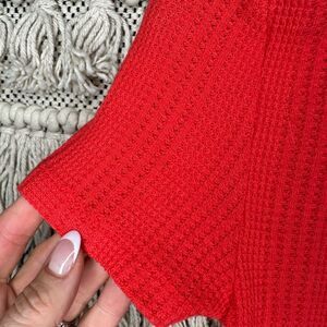 Elodie Red Waffle Knit Henley Top