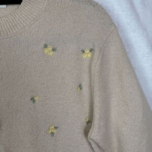 Elodie Sweater Cropped Beige Cream with Embroidered Yellow Flowers Size Medium. Excellent condition. See photos for details and unstretched measurements. Shop my closet and bundle multiple items for discounts and one shipping fee!